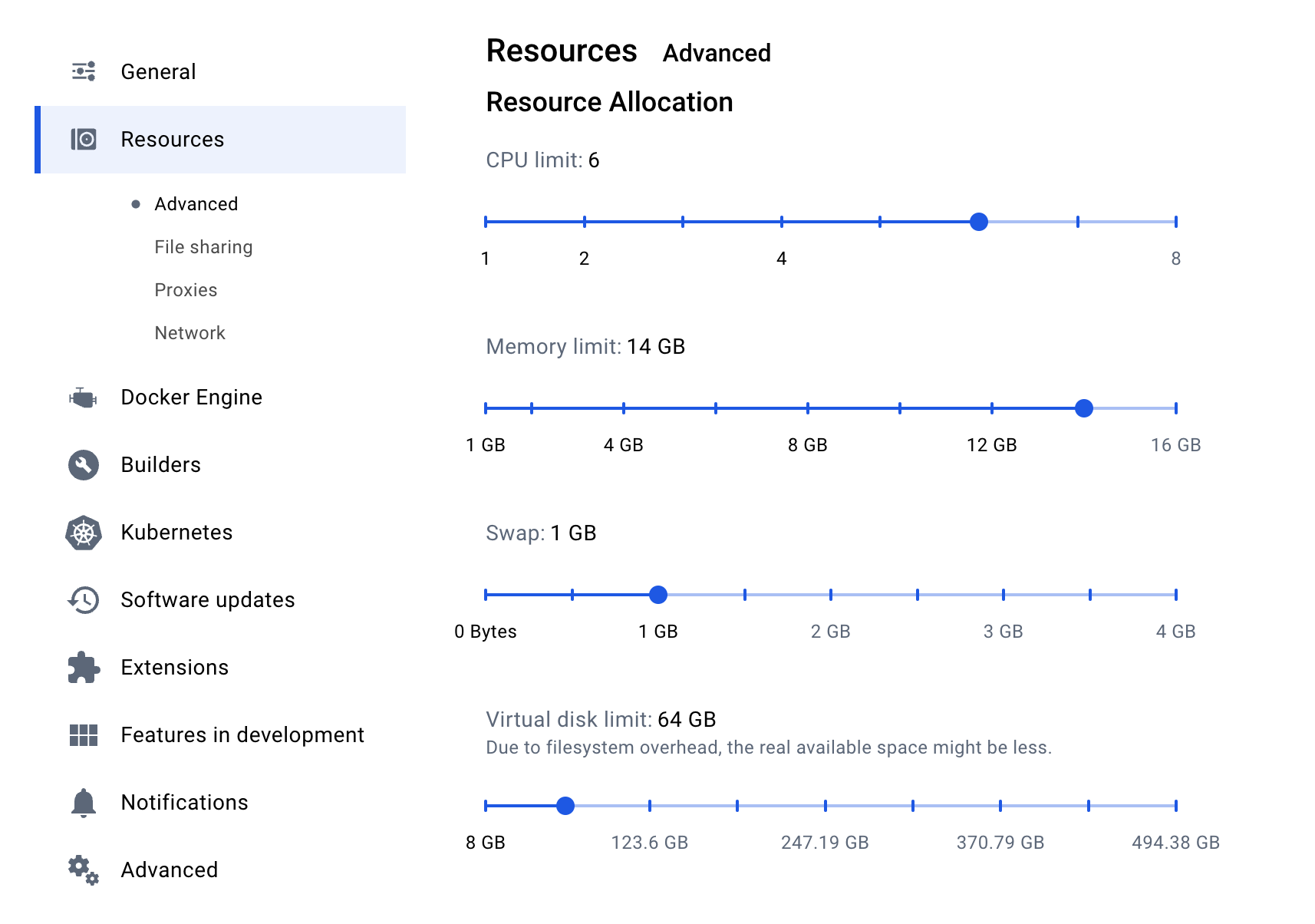 To run the multinode mode, ensure the following configurations are set at minimum in Docker Settings -> Resources and at least 14 GB of memory are available for Docker: