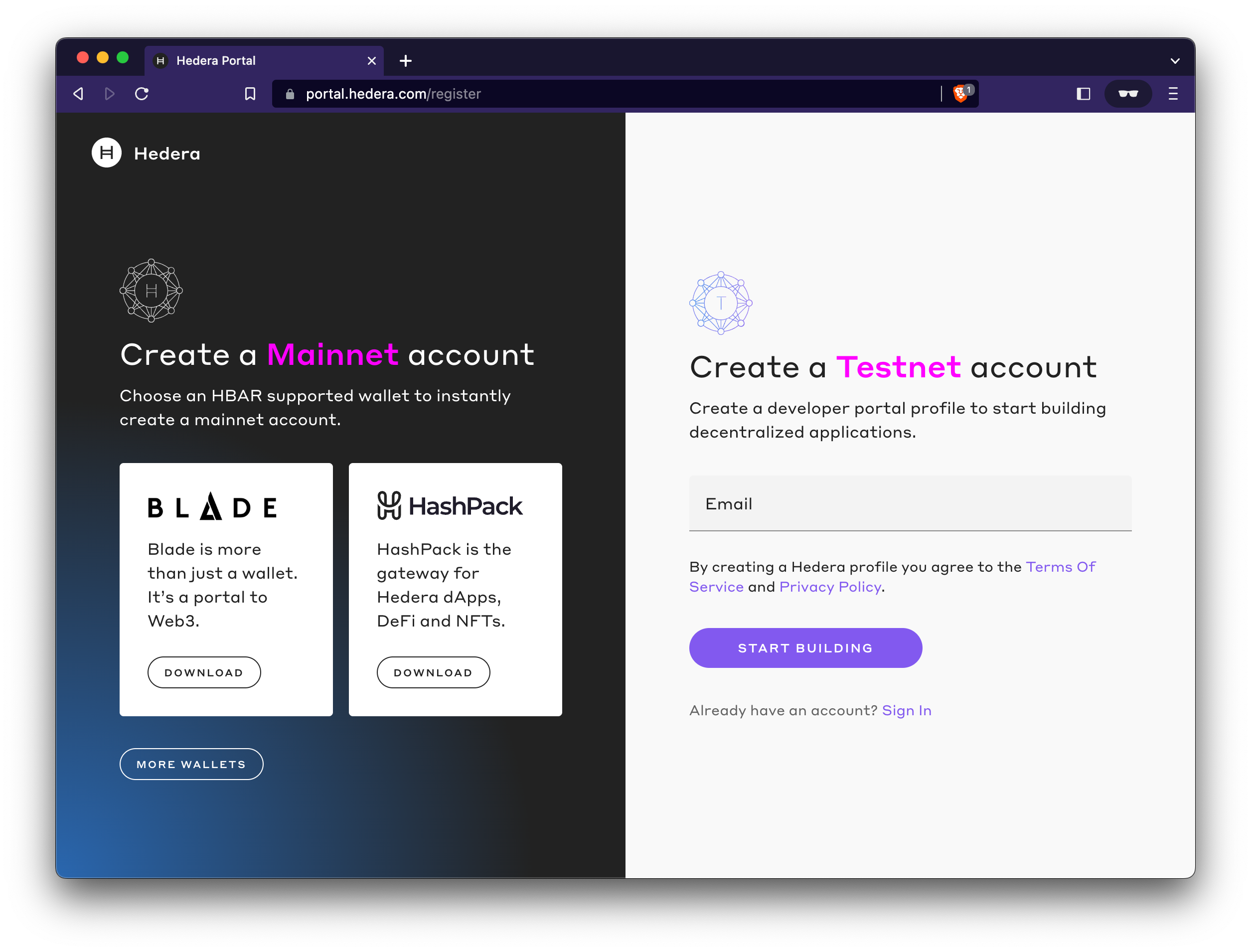 Visit the Hedera Developer Portal and follow the steps to sign up and create your testnet account.