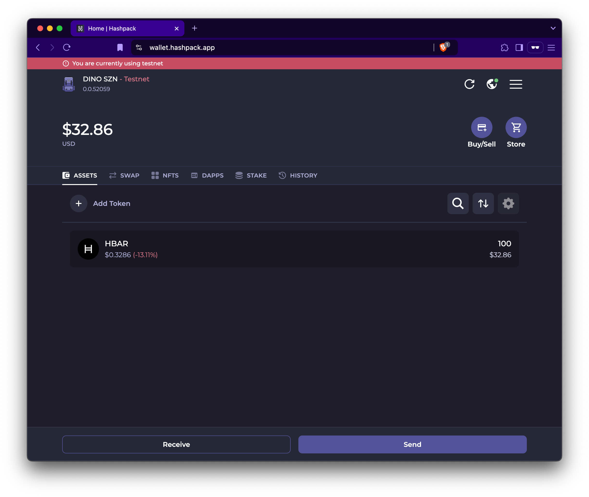 When you create a testnet account through HashPack, it’s automatically funded with 100 HBAR. To add another 100 HBAR, use the Hedera Faucet for a total of 200 HBAR. Note that after the first day, faucet funding is limited to 100 HBAR per day.