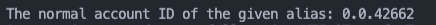 console.log(`The normal account ID of the given alias: ${accountId}`);