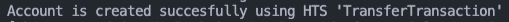 `Account is created successfully using HTS 'TransferTransaction'`