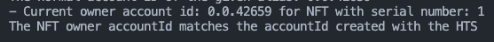 `The NFT owner accountId matches the accountId created with the HTS\n`
